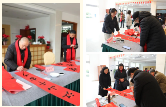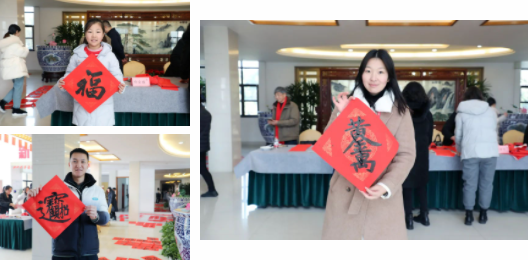 每逢春节,无论城市还是乡村,家家户户都要精选福字、春联张贴于门上,以此辞旧迎新。从“千门万户除旧岁,总把新桃换旧符”到“天增岁月人增寿,春满乾坤福满门”,人们用各种美好的祝福语表达对来年的美好渴望。为弘扬中华传统文化,践行社会主义核心价值观,进一步丰富EMC易倍人的精神文化生活,营造欢乐喜庆、文明祥和的新春佳节氛围,1月29日,姜堰区书法家协会走进EMC易倍集团开展“’龙腾三水’迎新春、送祝福”活动,为企业员工送上美好的龙年祝福。